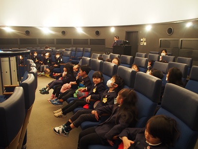 プラネタリウムで冬の星座を見せていただいたり、『星うさぎと月のふね』のお話をドームで見せていただいたりしました。