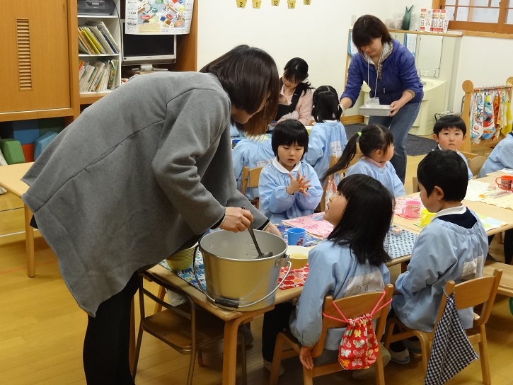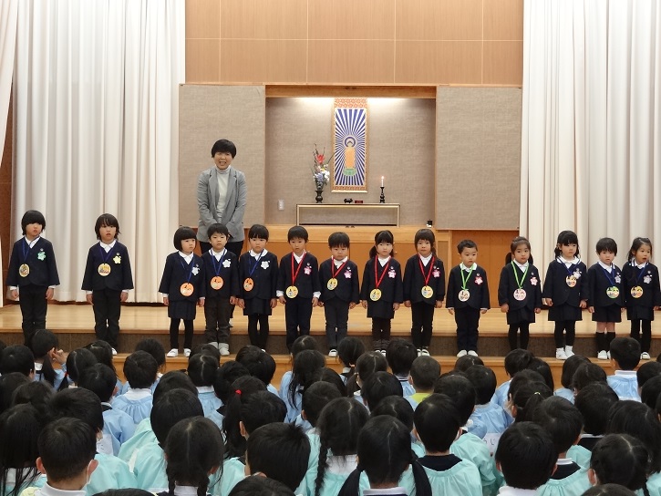 春も間近・・・といいたいところですが、この日は曇り空の肌寒い天気となり、まさに♪春は名のみの風の寒さや・・・。冬に逆戻りのような1日でしたが、子どもたちはこれで全員が一つずつ大きくなり、進級の春はもうすぐです。
