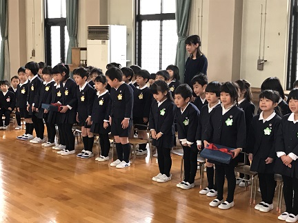 背筋もぴしっと伸びた卒業生の年長さん。一生懸命練習してきた「送ることば」を伝える在園児の年中さんと年少さん。