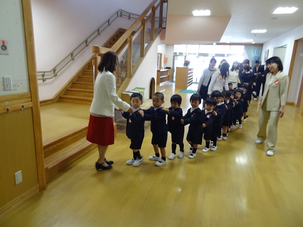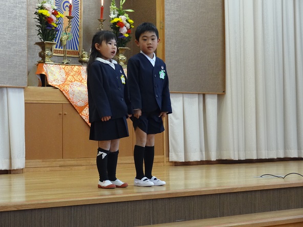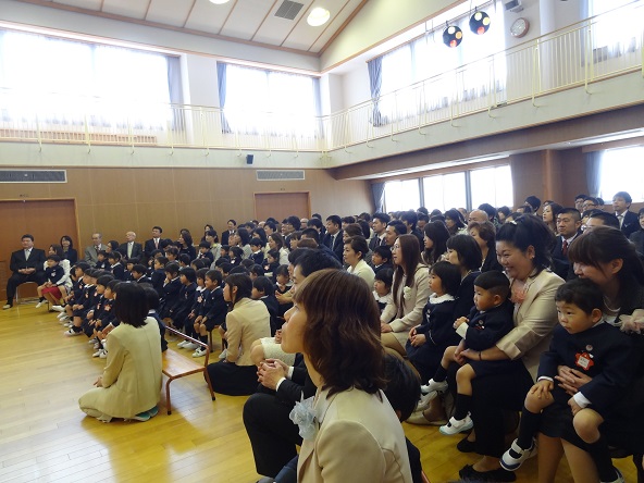 好天に恵まれたこの日、56名の年少児が入園しました。