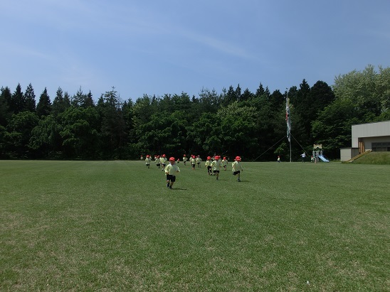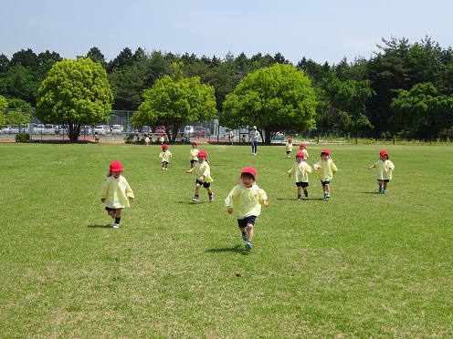 とにかく広い!!広々とした芝生の庭を、ただひたすら走り回るのも楽しいようでした。息が切れるまで、友だちと一緒に走ったり転がったり・・・。全身で広さを味わい、気持ちよさを味わったようです。