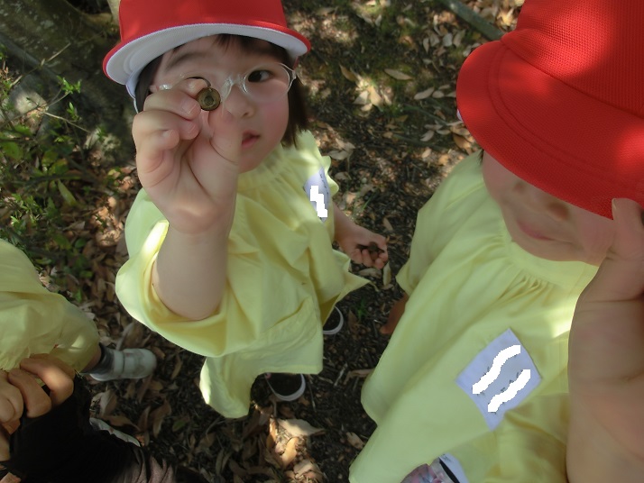 木の実や小動物がいっぱいのグランドは、子どもたちにとっては宝のお庭だったようです。