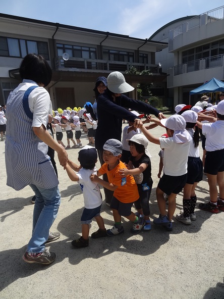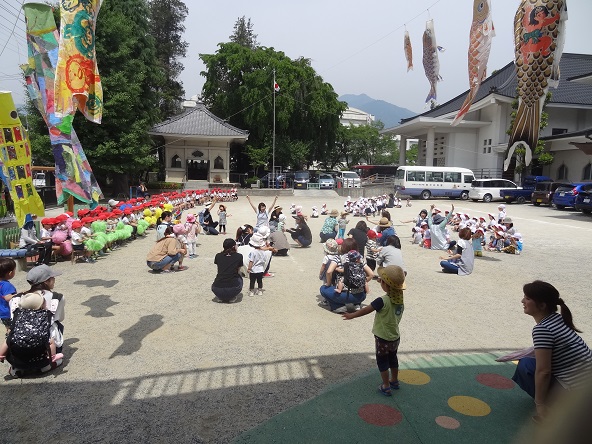 園児たちの「こいのぼり運動会」の練習の一部に参加させてもらい、交流や運動を楽しみました。