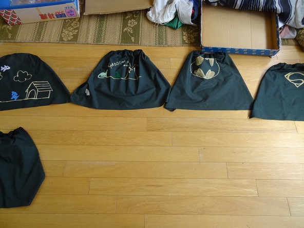 3時の降園時刻まで、一日或いは参加できる時間だけ、それぞれのご都合に合わせてご協力いただいた皆さん、本当にありがとうございました。翌日子どもたちはさっそくマント(右写真)を身につけ、ヒーローごっこに興じていましたよ。