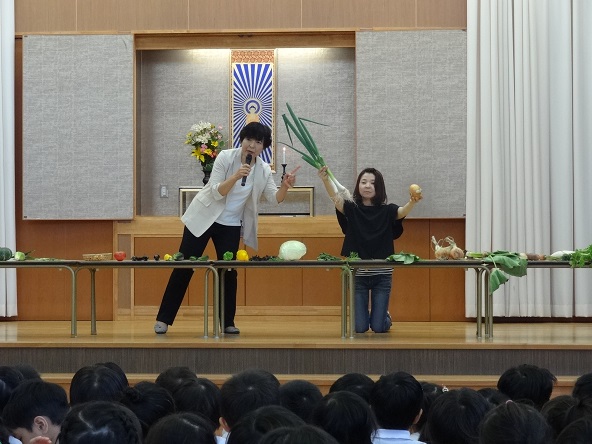 集会では園長先生から、色々な夏とれる野菜について説明を聞きました。