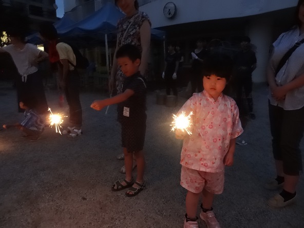 楽しかった花火大会も1時間程で終了。最後にみんなで夕焼け小焼けを歌って解散しました。
