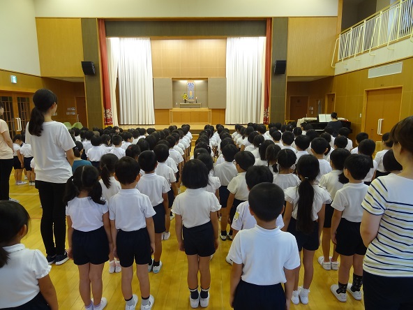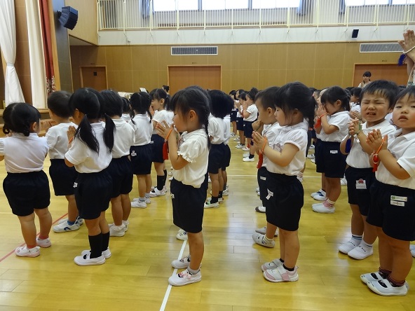 年少さんも上手に手を合わせて,礼拝することができるようになりました。みんなお盆の時も上手にお参りできたかな?
