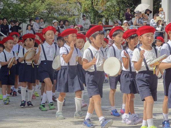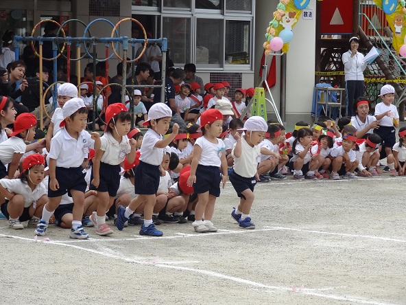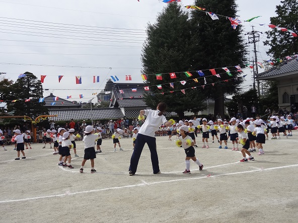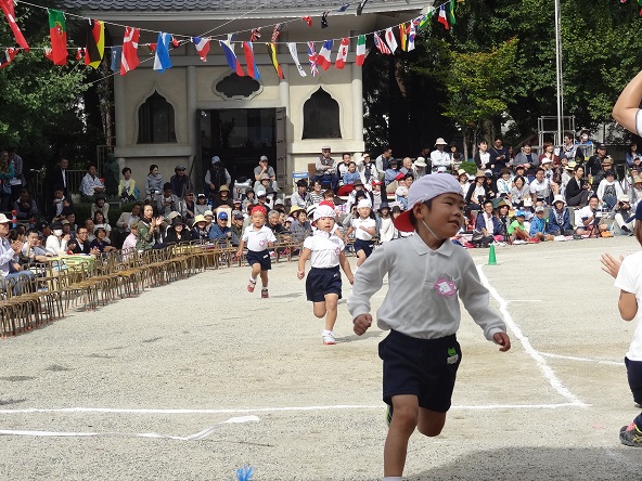 9月30日(土)天候に恵まれ、慈光幼稚園の園庭で運動会が行われました。一人一人の子どもが頑張り、どの子も輝き、大勢のご家族の声援の中、のびのびと運動会一日を楽しみました。
