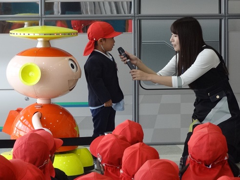 エスタ-くんはロボット。でもおしゃべりがとっても上手。興味を持って見たり聞いたりすることができ、楽しいひとときが過ごせました。