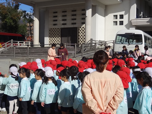 その後年少以上児は集会を開き、消防署の方から避難について、火災の怖さについてお話を伺いました。子どもたちもしっかり防火の約束ができました。