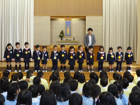 年少以上の誕生者は、年長が3人、年中が6人、年少が5人の14人が一つずつ大きくなりました。