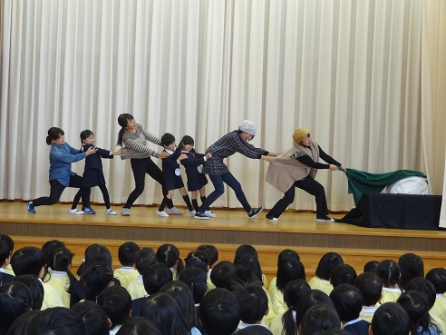 アトラクションにはね年長の誕生者が3人加わって「おおきなかぶ」の劇をしました。