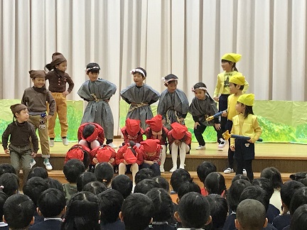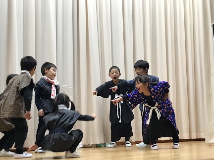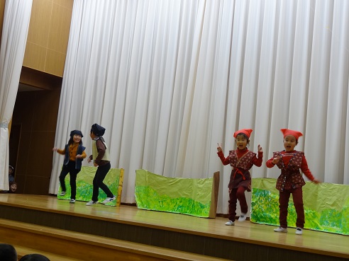 12月6日(水)、劇とリズムの会があり、年少・年中が音楽のステージ、年長が劇のステージをそれぞれ披露しました。