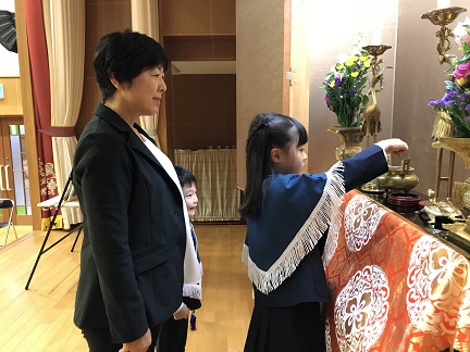 その後、以上児の集会があり、年長さんの献灯・献花・献香で始まりました。