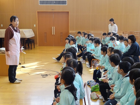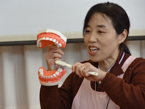 12月14日(木)、飯田下伊那口腔衛生センターの歯科衛生士さんによる歯磨き指導を受けました。
