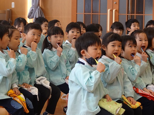年長 歯磨き指導を受ける