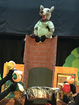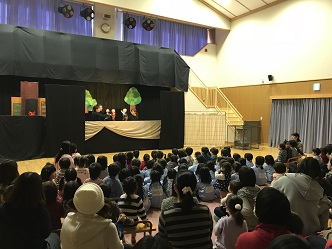 最後のさくらんぼのメインは人形劇を見ること。先生方による「3びきのこぶた」を楽しんでもらいました。