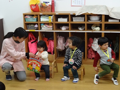 以上児さんは年長さんが7人、年中さんが7人、年少さんが3人それぞれ一つずつ大きくなりました。