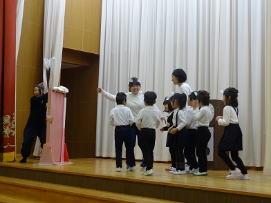 アトラクションには年長さんの7人も参加し、「おおかみと9匹の子ヤギ」を見せてくれました。