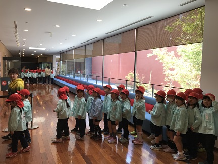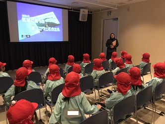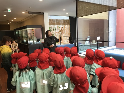 映像ホールでアニメーションを見たり、展示されている人形について説明を受けました。人形にとても興味を持って見ていました。