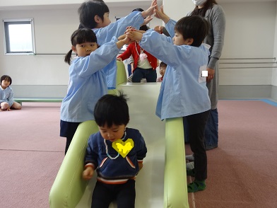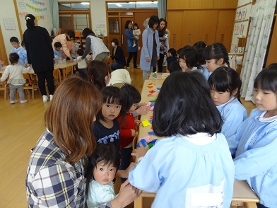 この日は、年長さんがお手伝い。小さなお友達と一緒に遊んでくれました。