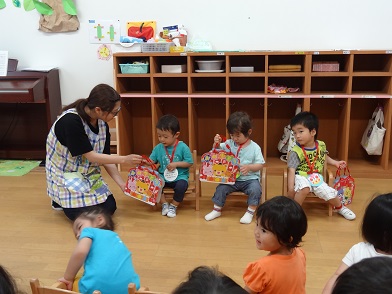 2歳になったお友達二人、3歳になったお友達一人、合わせて三人のお友達がみんなにお祝いしていただきました。
