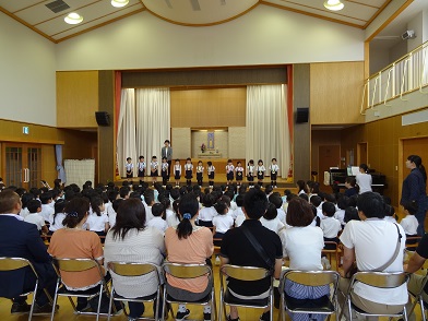 年少以上のお友達の集会は遊戯室。お祝いにお家の方も来てくださいました。集会後は各クラスでのお祝いです。お友達はどんな赤ちゃんだったのかな?お母さん方にお話しいただきました。
