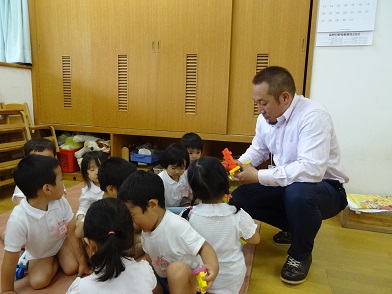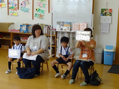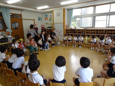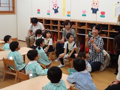 お友達のおかあさんやおとうさんが今日は「先生」です。赤ちゃんの頃の話、名前の話、子どもたちにわかるようにお話しくださり、子どもたちもしっかり聴きました。