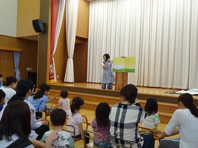 お話の時間では大型絵本を見て、みんなで挨拶をして降園となりました。
