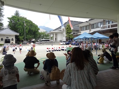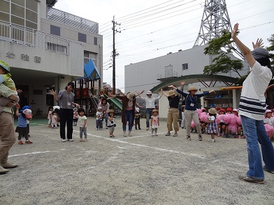 29日のお友達は年長さんのかけっこを見たり、「ぞうさんのあくび」の体操を年少さんや園の2歳児さんたちと一緒にやってみたりしました。