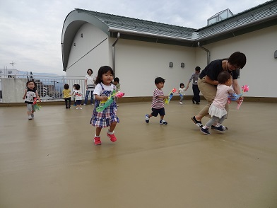 その後屋上で「こいのぼり拾い」のかけっこをしました。