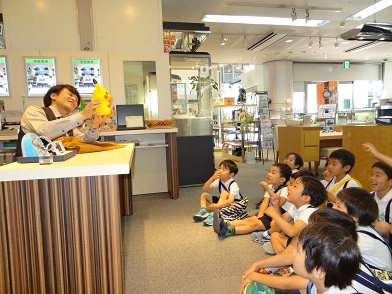 クイズ形式で子どもたちに身近なキャラクターの目覚まし時計を見せていただいたり、きれいなメロディーの流れる壁掛け時計やからくり時計を見せていただきました。