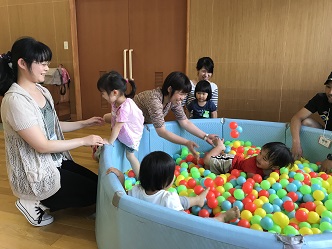 今回は室内に遊び場を作り、子どもたちは好きなところで思い切り遊び、保護者の皆様は子どもと遊びながら他の保護者の方々とお話をしたりお友だちを広げたりする機会としていただきました。