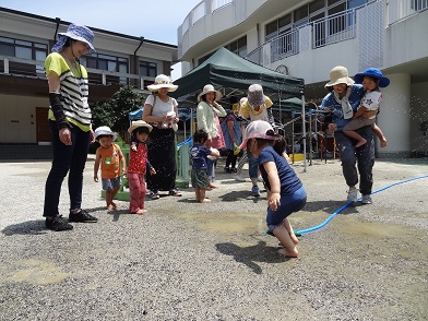後半にはスプリンクラーから飛び出す水をくぐって土台の亀さんにタッチするなど、しっかり遊ぶことができました。