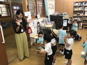 給食のお手伝いをいただき、その後の遊びもサポートしていただきました。帰りには、「ありがとうございました」とおかあさん先生方にご挨拶している子どもたちです。