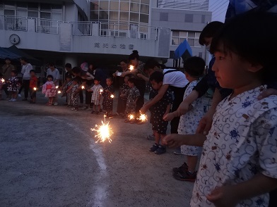 7月17日(火)午後7時から、園庭において、年中さんたちの花火大会がありました。