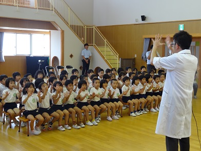 クイズをしたり、手洗いの仕方を歌で覚えたり、いろいろなことを教えていただきました。