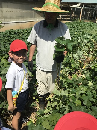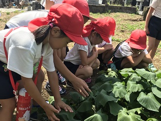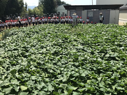8月30日(木)、年長さんは上郷の芋畑までサツマイモの生長の様子や畑の状態を見るため出かけていきました。