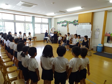 9月5日(水)、台風一過のこの日、9月生まれのお友だちをお祝いする誕生会がありました。