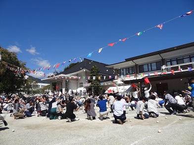 PTAの皆さんも玉入れに参加。しゃがむというハンデをものともせず、皆さん上手に投げていらっしゃいました。