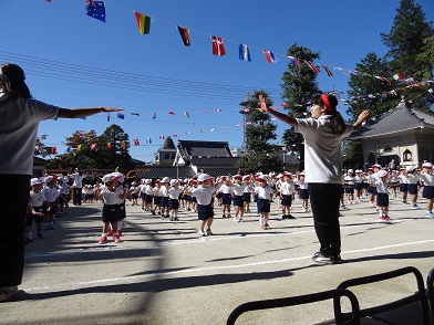 9:00開始。入場行進後開会式。 運動の始まりは、全園児の(0.1歳児は除く)はとぽっぽ体操。