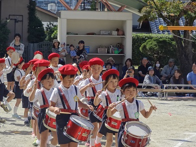 年長のリズムパレード。小さな学年の子どもたちの憧れになっていました。