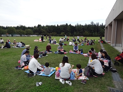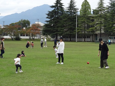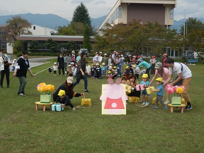 10月10日(水)、未満児さんたちは飯田女子短期大学のグランドに集合して、親子遠足がありました。