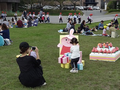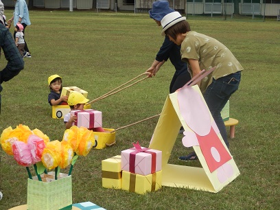 遠足での主な活動は、運動会にできなかった親子競技の『みんなで お誕生日おめでとう!』をしました。