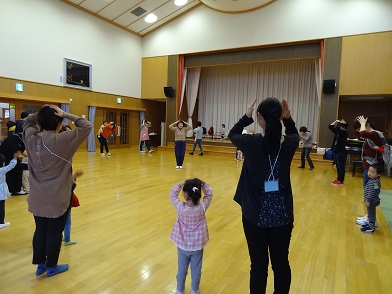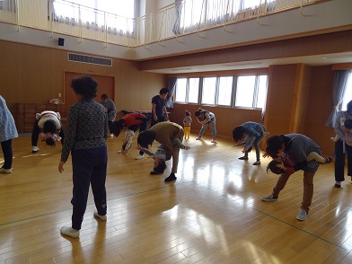 今回は、講師に田中美智子先生をお招きして『親子体操』を行いました。