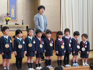 以上児の誕生会。6歳になった年長さん7名、5歳になった年中さん4名、4歳になった年少さん8人の合わせて19人のお友だちがお祝いされました。