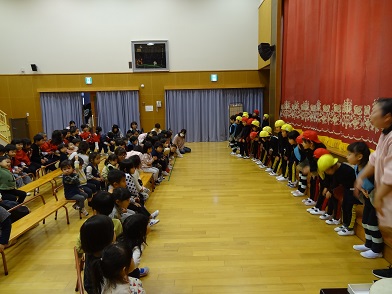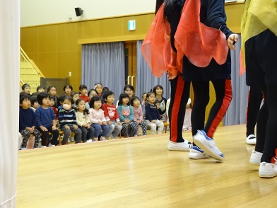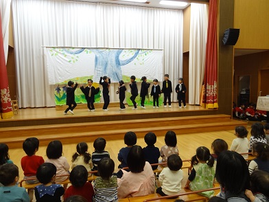 園で一番小さな「つくし」の子どもたちも、お兄さんたちの動いたり話したりする姿を目で追い、結構しっかり見てくれていました。最後にみんなで「ありがとうございました。」