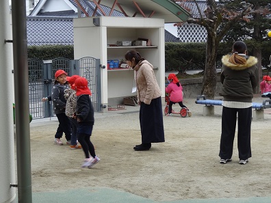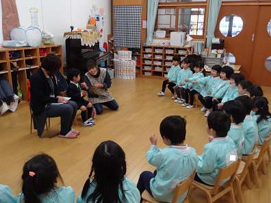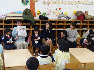 写真を見ながらお友だちの小さな頃の話をお母さん方から伺いました。皆さん子どもたちが興味を引けるような写真を見せてくださったり、話をしてくださったりして「おかあさん先生」としてお友だちのことをみんなに教えてくださいました。給食後は外遊びも見てくださいました。この日はとっても寒い日でしたが、子どもたちと一緒に外に出てくださりありがとうございました。