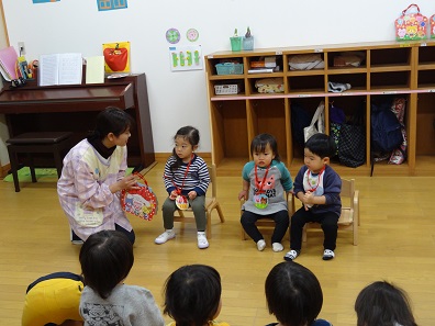 未満児さんは、3歳になったお友だちが一人、1歳になったお友だちが二人、3人のお友だちが一つ大きくなりました。