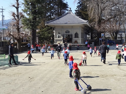 給食後の遊びの時間ではおかあさん先生・おとうさん先生方が張り切って下さいました。